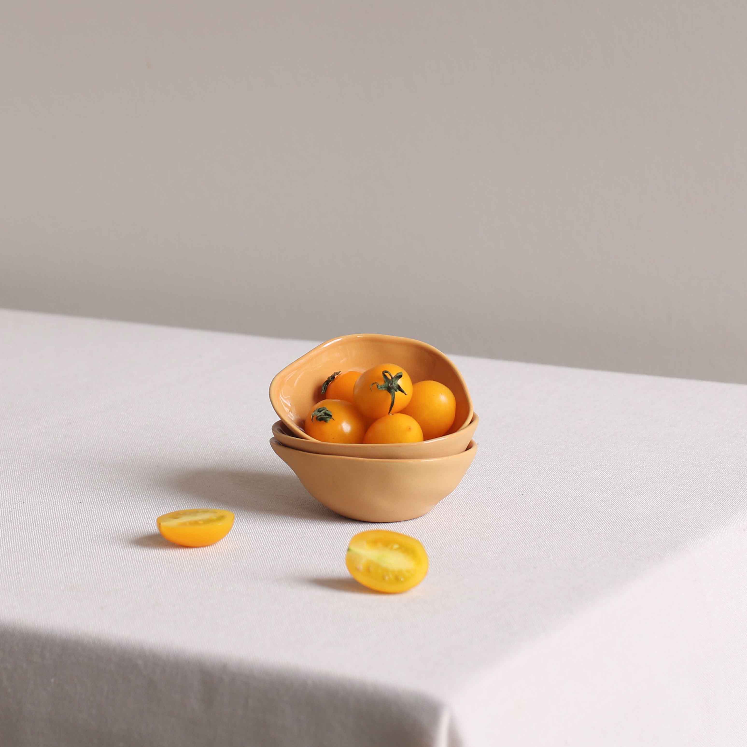 It’s a world of tiny things. A bowl designed with free-style rim, glossy finish inside and matte rough outside. Appropriate for butter, wasabi and other condiments, perfect for both Oriental and Western cuisine.