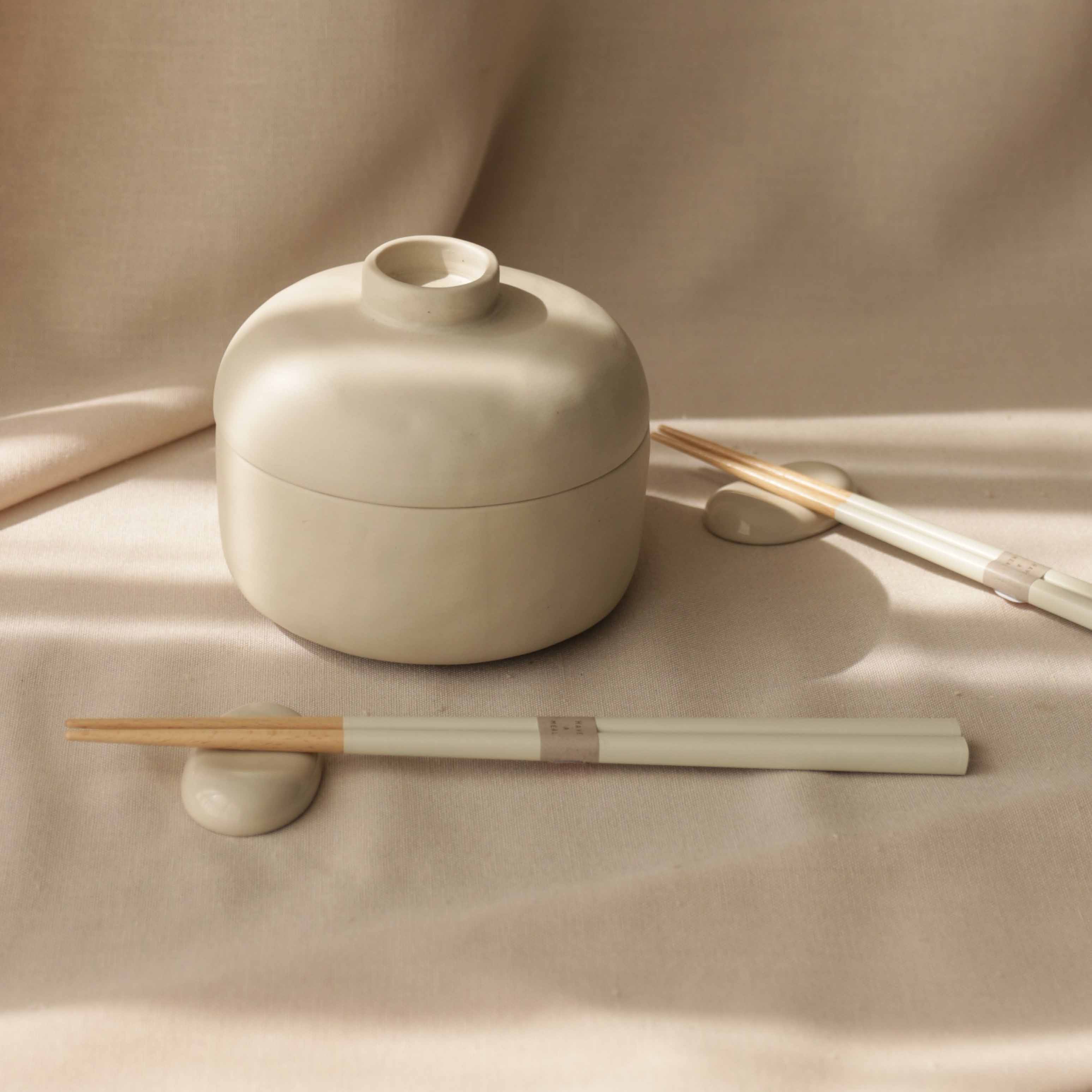 A small ceramic holder for the chopsticks. Cutie piece joining your Asian dining table