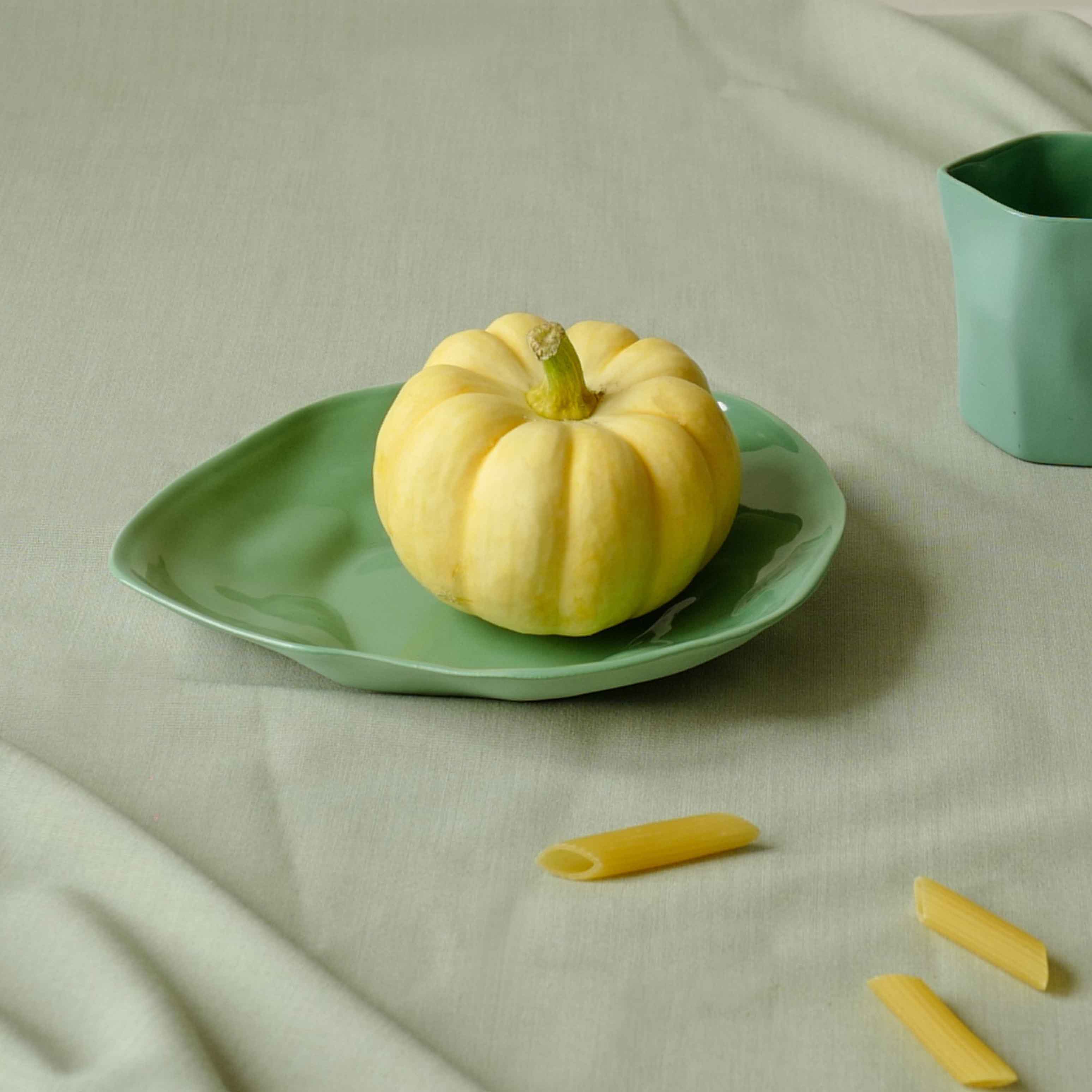 Irregular leafy shape with glossy finish inside, matte rough outside. With its own handicraft nature, a slight variation is presented. Used for personal portion, desserts, or as a saucer for your bowl and cup.