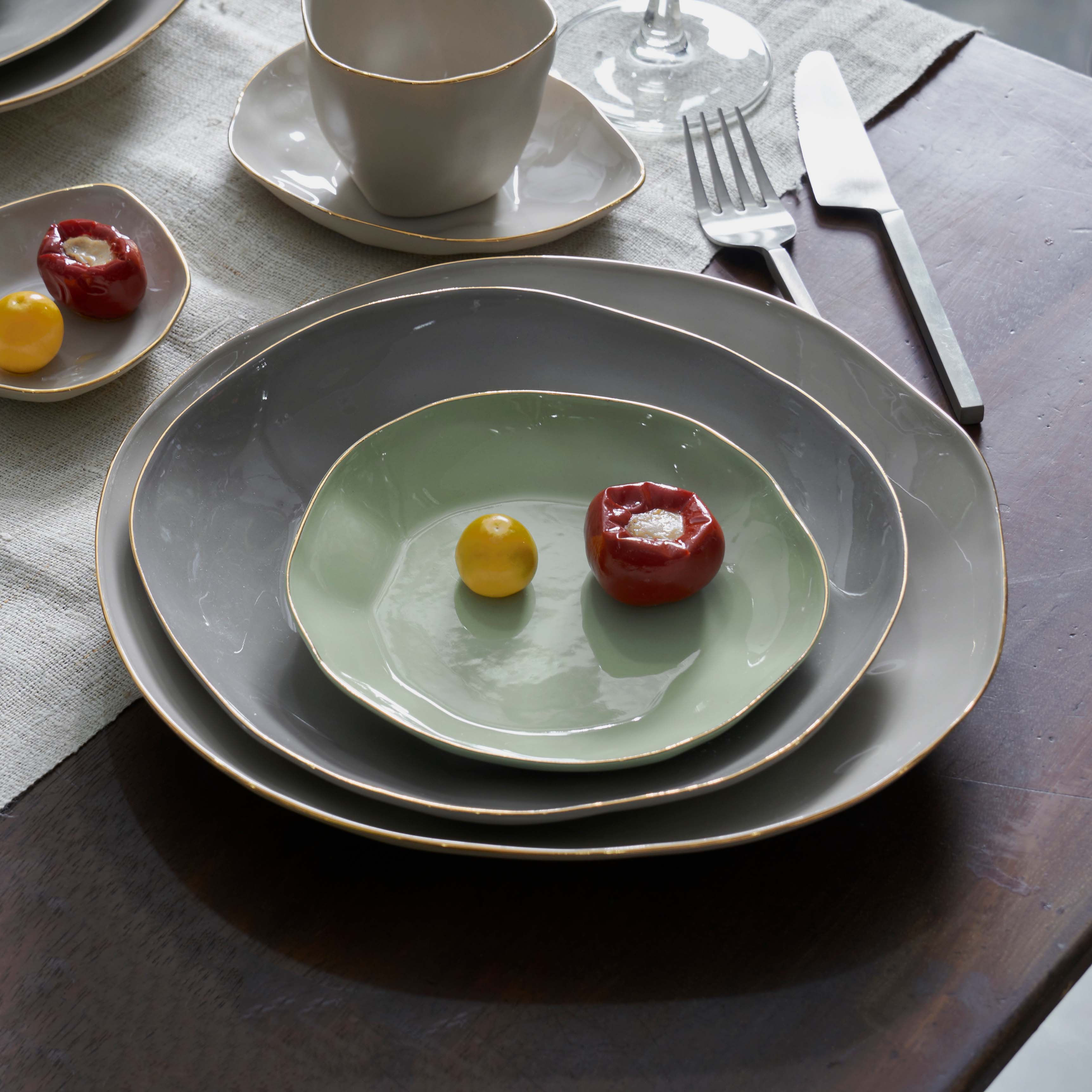 The Indochine collection, with its golden embellished rim, can add a touch of warmth and radiance to your table, creating an inviting ambiance for intimate gatherings on these last days of the year.