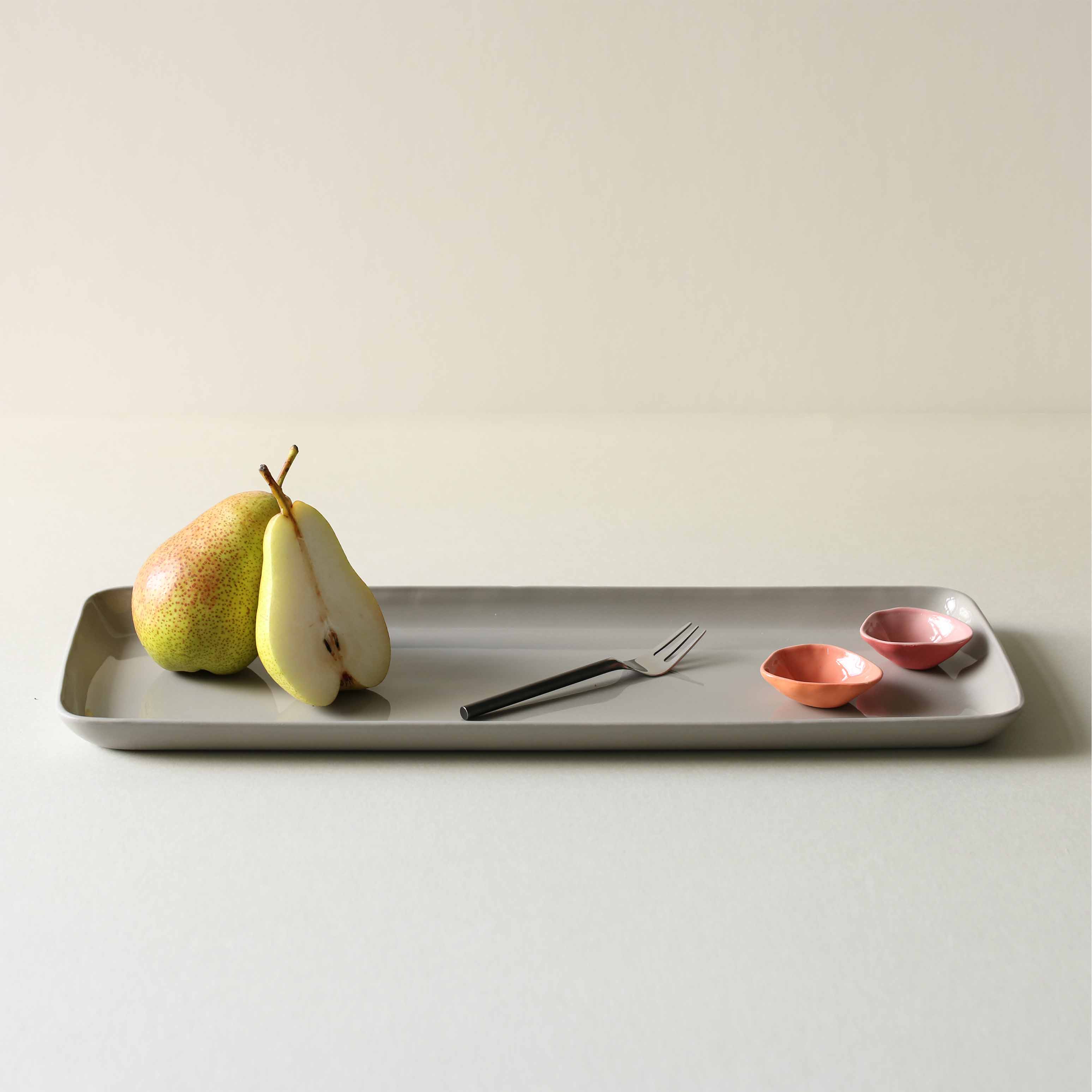 Ceramic tray with glossy finish inside, matte rough outside can be used as appetizer serving plate or for sushi and rolls.